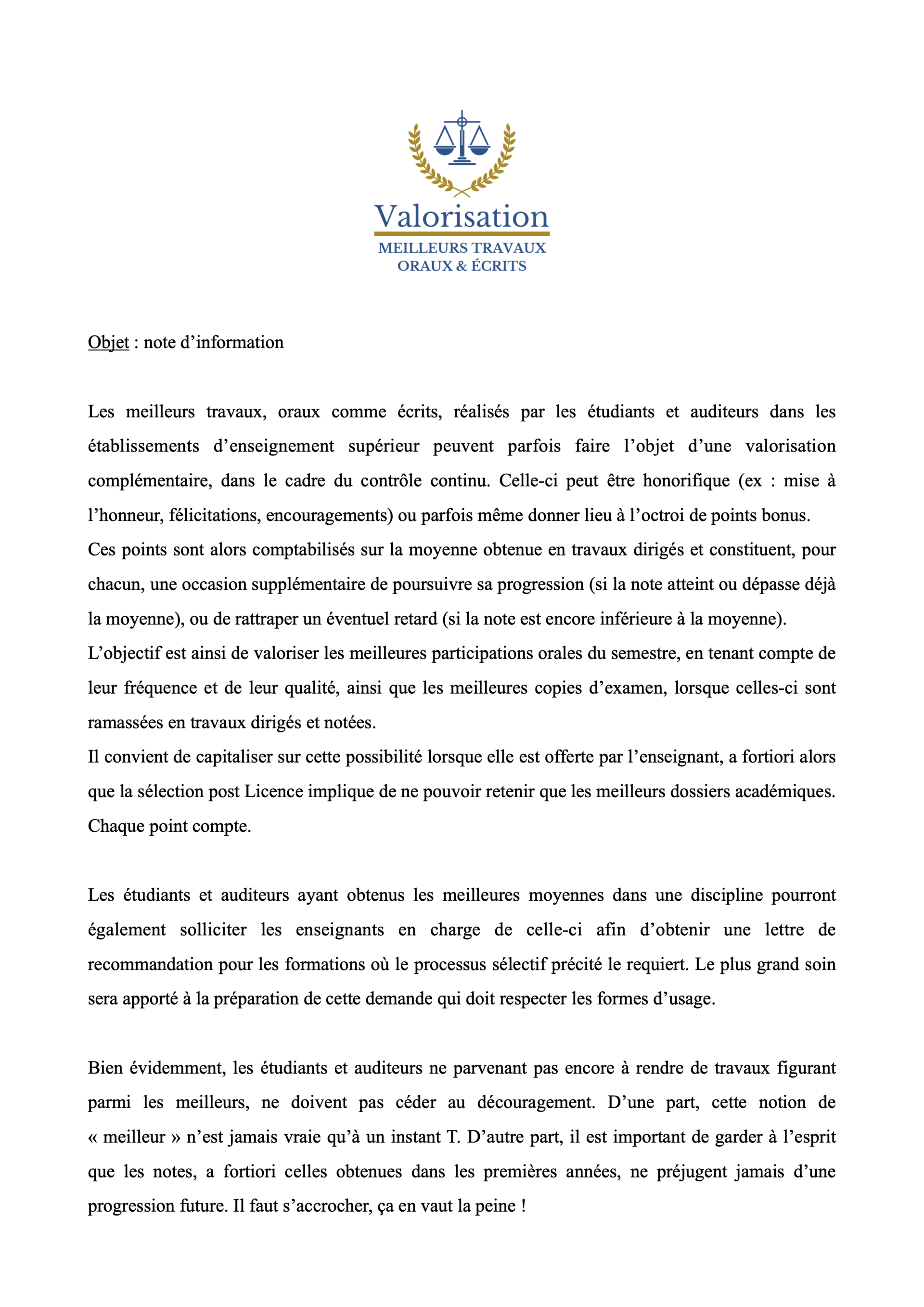 INFORMATIONS POUR ÉTUDIANTS ET AUDITEURS
